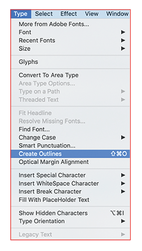 You can find the “Create Outlines” option in Adobe Illustrator under the “Type” menu. Many different programs will have this similar option.